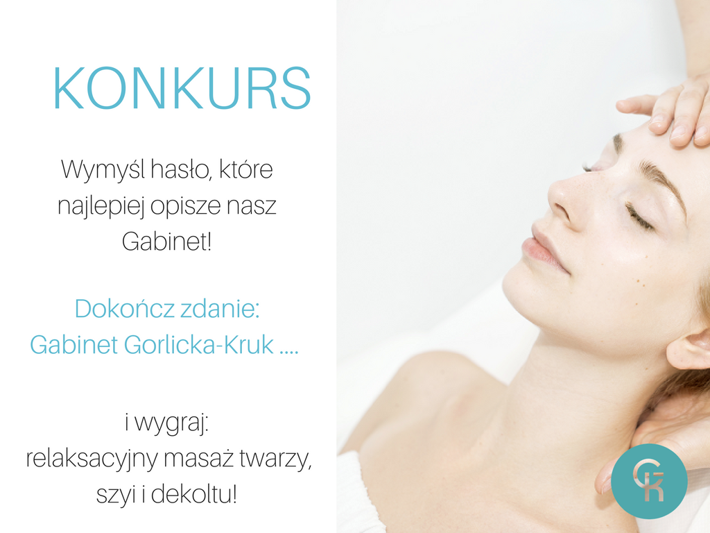 • wymyślić hasło, które będzie spójne z wizerunkiem naszego Gabinetu. Wystarczy w komentarzu pod postem konkursowym na profilu Gorlicka-Kruk na Facebooku  dokończyć zdanie: „Gabinet Gorlicka – Kruk….”
